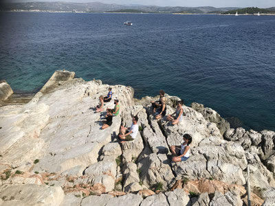 16:30 Uhr Intensive Hatha Yogastunde / Gehmeditation in Stille zur Kapelle Punta Planka /Sonnenuntergang Meditation am Meer